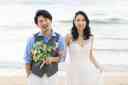 沖縄の雰囲気とマッチする明るさをお持ちのおふたり 明るい笑顔で