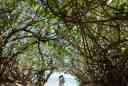 遠くの空を見つめるおふたり ドレスはふわりとなびかせて