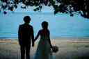 じゃれ合うおふたりはお似合いそのもの ビーチの雰囲気もなんだかロマンチック