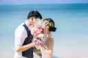 最後はビーチでの正統派写真 大人っぽい可憐なブーケを添えて