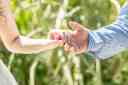 手を取り合って駆け足で歩むおふたり これからもおふたりで進んでいく