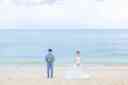 沖縄の海をドレス姿で歩くお二人の貴重なロケーション!!!