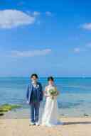 蒼い海をバックに見つめ合うお二人がロマンチック・・・