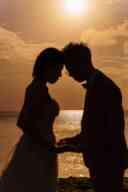 夕日越しにお二人、ロマンチックな雰囲気に包まれます・・・