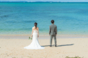フレームを使って。青い空とフレーム、おふたりがとても絵になっています。