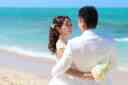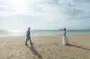 ビーチをあるいていくおふたり ご新郎様が引っ張っていくおふたりの未来図