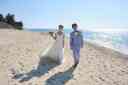 ご新郎様のソロショットでは ビーチ沿いの緑も使って男らしく