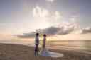 煌めくような美しいビーチを目の前にする おふたりの後ろ姿を