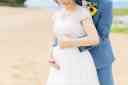ブーケやイニシャルオブジェなどの小物を使って 見つめ合うおふたり