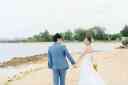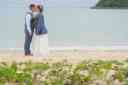 ビーチでの1枚 おふたりが寄り添いながら並んでいるだけで美しい