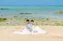 続いてはビーチへ移動 おふたりの笑顔がキラキラと眩しい
