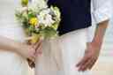 爽やかな印象を持つおふたり シックなブーケがおふたりによく似合う