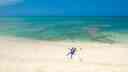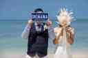 ビーチを満喫するおふたり ご新婦さまのカメラ目線が愛らしい