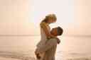 肩車をしてビーチを満喫するお子様 談笑しながら仲良く撮影を