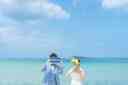 おふたりらしい雰囲気の中 ウォーターイン撮影で海を満喫