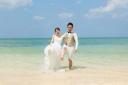 新郎様だけ海にダイブしていくところを!ユニークなショットもお任せください