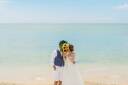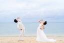 ビーチを背景におふたりが並ぶ とても絵になるおふたり