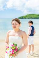 ビーチを背景におふたりが並ぶ 絵になる1枚を撮影する