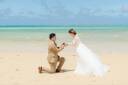 いよいよビーチへ移動 ぴたりと並んで絵になるおふたり