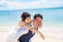 透明感ある天然ビーチと、お二人のとびっきりの笑顔が映えますね!