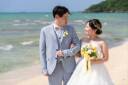 沖縄のビーチを満喫しているおふたり まったりとすぎる時間を