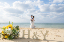 ビーチに到着して撮影スタート!この日は晴天!という天気ではなかったのですが、おふたりの素敵な笑顔で楽しく撮影がスタートしました!