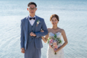 美しい海を目の前に、見つめ合うおふたり 自然と笑顔が溢れる