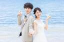 ビーチを満喫していたおふたりの振り返りショット 眩しい笑顔