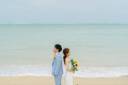 ビーチを目の前に、顔を付き合わせるおふたり 思わずうっとりとしてしまう