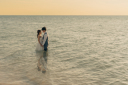 選べるオプションプランで、ウォーターイン撮影を選ばれたおふたり。ラストは衣装も気にせず海に入って撮影!