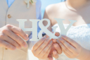 手を取り合うおふたり ご新婦様の左手にはきらりと輝く素敵な指輪