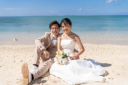 おふたりとも素敵な笑顔♪ ヤシの木を背景に明るい一枚に