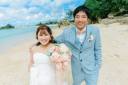 撮影アングルを変えるとビーチの色味が変わるのも、午後撮影の特徴!おふたりが見つめている右側は青みのあるビーチに◎