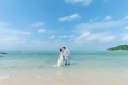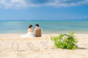 ビーチに移動し、撮影スタート!広い海を背景にポツンとおふたり まずは後ろ姿で気持ちをリラックスしてもらいます♪