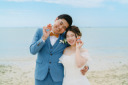 海沿いをおふたりで並んで歩いて 透き通った海を見て気分も上がります!
