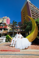 まるで別のリゾート地にいるみたいな街並みのアメリカンビレッジ!ドレス・タキシード姿が映えるスポットです♪