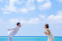 背景全体が海のショット。おふたりの衣裳がとても映える♪