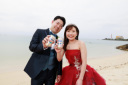お次はカラードレスにお着替えをしてビーチへ♪お二人の笑顔が輝いてます♡