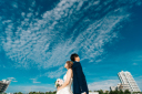 カラフルなサングラスを使ってお茶目な一枚に♪沖縄らしい解放感ある印象になります♪