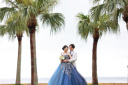 見つめ合うお二人と、アメリカンビレッジの雰囲気が相まって映画のワンシーンの様ですね♡