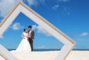 沖縄の綺麗な海をバックに指輪交換を!笑顔で指輪のお披露目タイム!