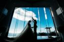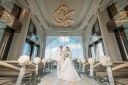 大きな窓からは真っすぐの地平線・・沖縄の海が一望できる豪華客船をモチーフにした魅力的なチャペル☆手を取りあっているおふたりの姿からは、深い絆と愛が感じられます♡