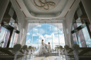 広い窓から差し込む光が幻想的に演出する記念写真♪