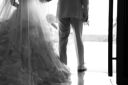 ドレス姿の柔らかなシルエットと、凛とした強さを感じるタキシード姿のシルエットが、まるで雑誌の表紙のように素敵です。優しく降り注ぐ陽光が更に優雅さを引き立てます。