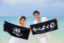 エメラルドグリーンの海とビタミンカラーのヘッドフラワーが鮮やか(^^)