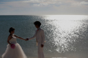 ビーチでも撮影!新婦様の手をとってしっかりとエスコートする紳士な新郎様です(^^)/