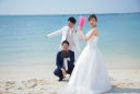 晴れた空に眩しい太陽!青い海に白い砂浜!沖縄の海での撮影は二人の最高の想い出♪