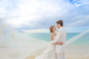 太陽が雲から顔を出しておふたりを祝福しているような一枚