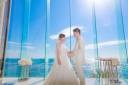 沖縄の海と空をバックに・・・。二人の愛をここで誓い、そしてそのの証として指輪交換。いつまでも輝き続けるでしょう。