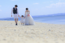 新郎様が新婦様を抱っこ♪お二人のバックに広がる海と、晴れ晴れとした真っ青な空から暖かさを感じるお写真ですね。素敵なロケーションで素敵な瞬間をお写真に♪